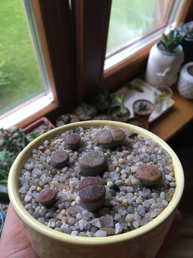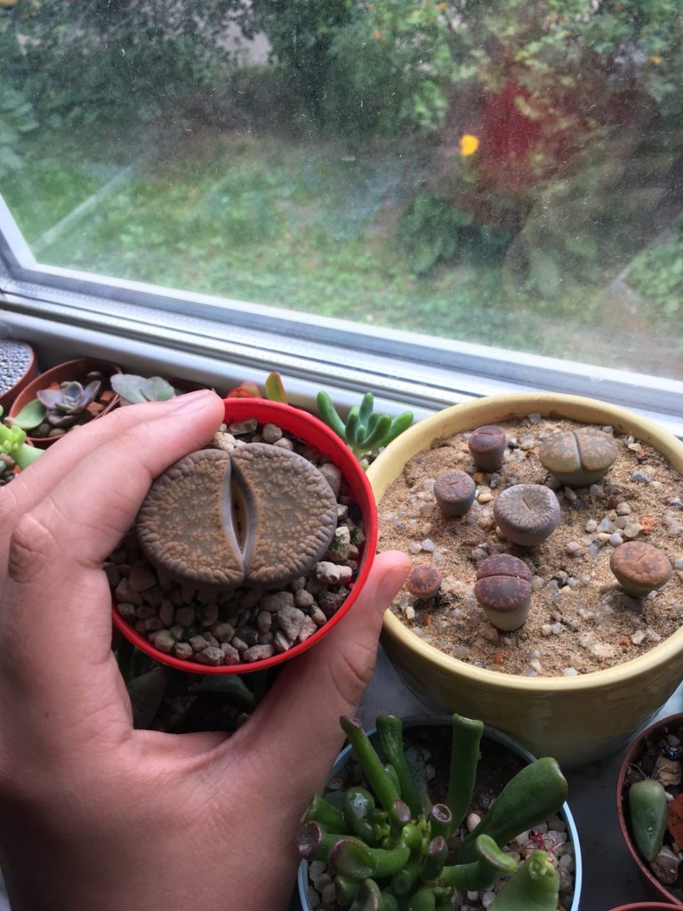 Я ими занимаюсь чуть больше месяца…совсем новичок. Знал о них ещё давно. И на авито нашёл один литопсик Лесли недалеко от дома за 180 руб (1 фото). Ровно месяц и три дня назад купил ему ещё 6 друзей (2 фото). У меня 5 сентября будет день рождение и подруга купила мне литопс в честь подарка (3 фото). В четверг поеду забирать так как не знает как за ним ухаживать.. ещё лежат 10 семян от Алины, в сентябре буде сеять. И все каждую минуту о них думаю. Час в день точно сажусь перед окном и любуюсь на них и на свои суккуленты. Суккулентов у меня 50+. Вот такая небольшая история!