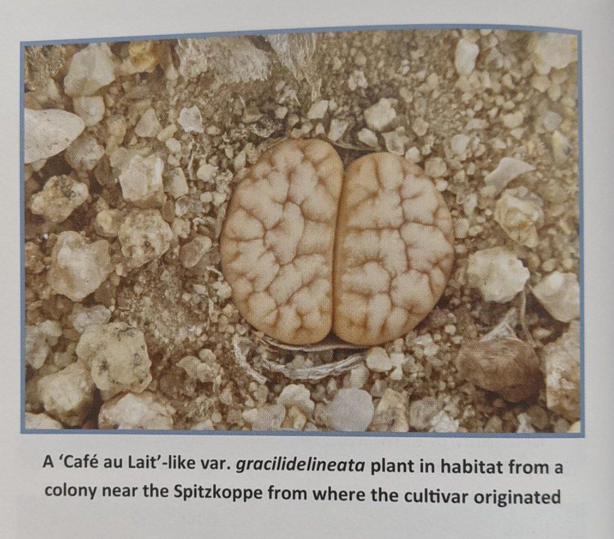 Lithops gracilidelineata subsp. gracilidelineata var. gracilidelineata ‘Cafè au Lait’. (cultivar).